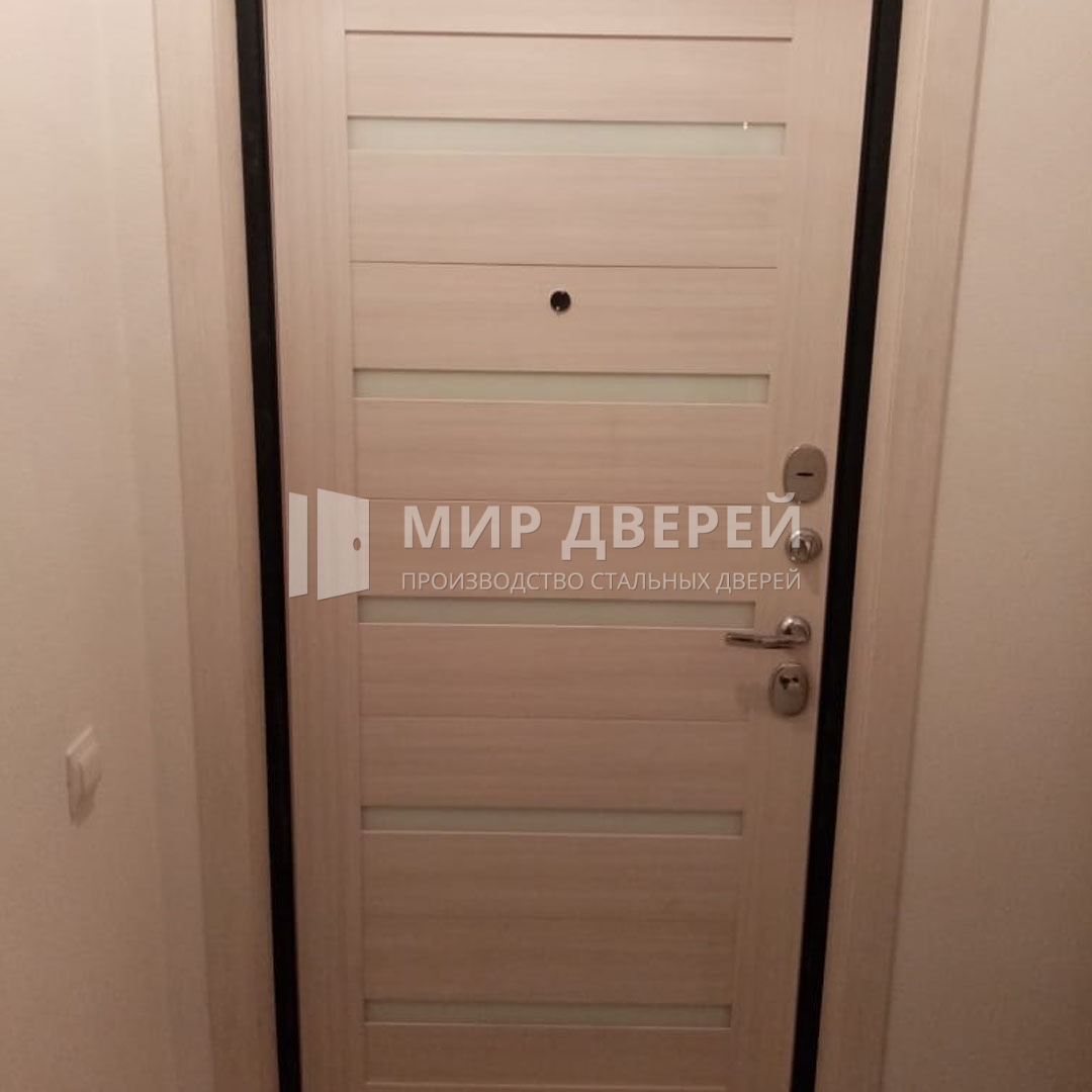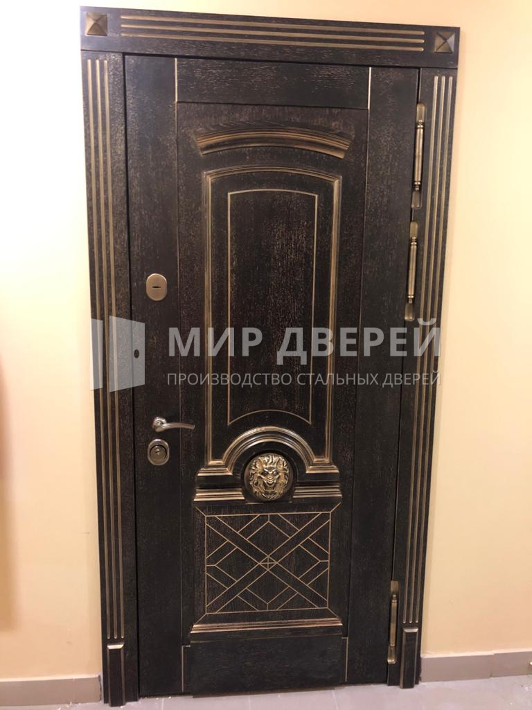 Эта дверь отличается современным дизайном и строгой эстетикой, которая прекрасно подчеркнет интерьер квартиры, офиса или частного дома. Корпус выполнен из профильной трубы 50х25 мм с ребрами жесткости 40х25 мм и стальным листом толщиной 2 мм, что делает конструкцию устойчивой к нагрузкам и надежной в эксплуатации. С обеих сторон поверхность оформлена панелями МДФ ПВХ в темных оттенках серого и черного, создающих стильный и солидный внешний вид. Входная дверь для квартиры №1 гармонично впишется как в классические, так и в современные интерьеры, сочетая визуальную привлекательность с функциональностью. Два контура резинового уплотнителя обеспечивают хорошую изоляцию от шума и запахов, при этом при необходимости конструкция может быть дополнительно оснащена плитой минваты или пенопластом для повышения тепло- и звукоизоляции. Блокираторы усиливают защиту, а универсальность модели позволяет изготавливать изделие в любых размерах и дополнять его различными элементами — от декоративных вставок до установки видеодомофона, что делает дверь не только надежной, но и максимально удобной в эксплуатации.
